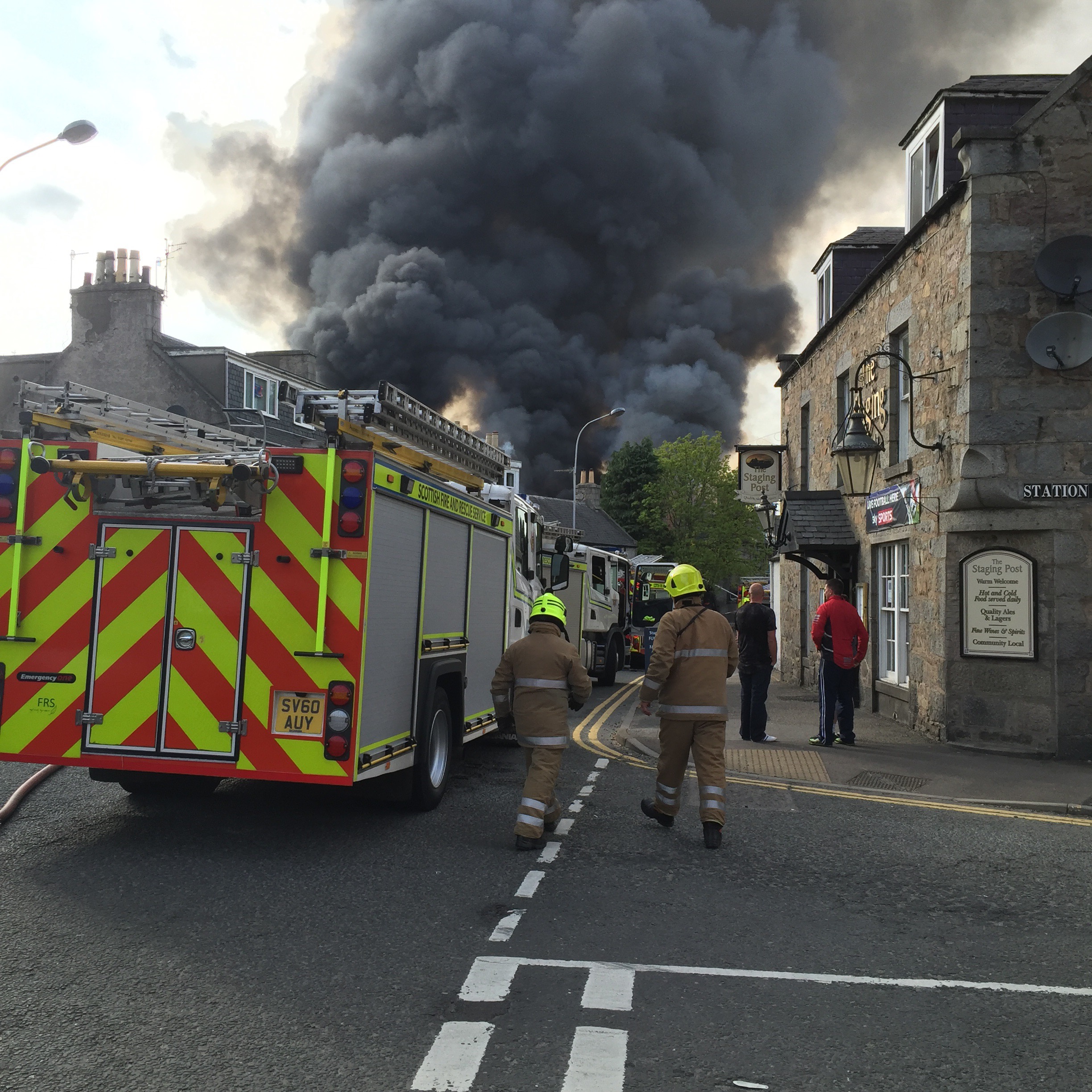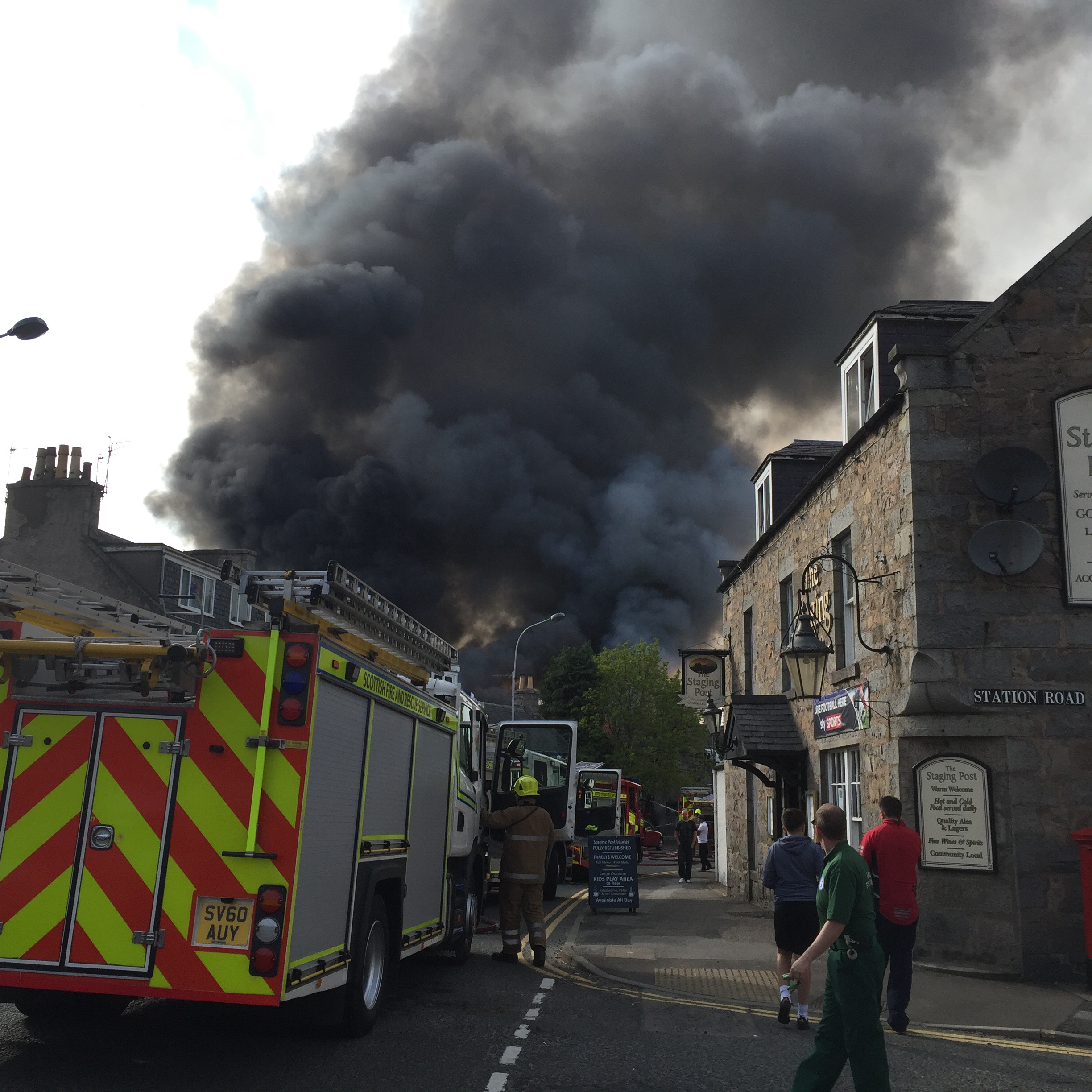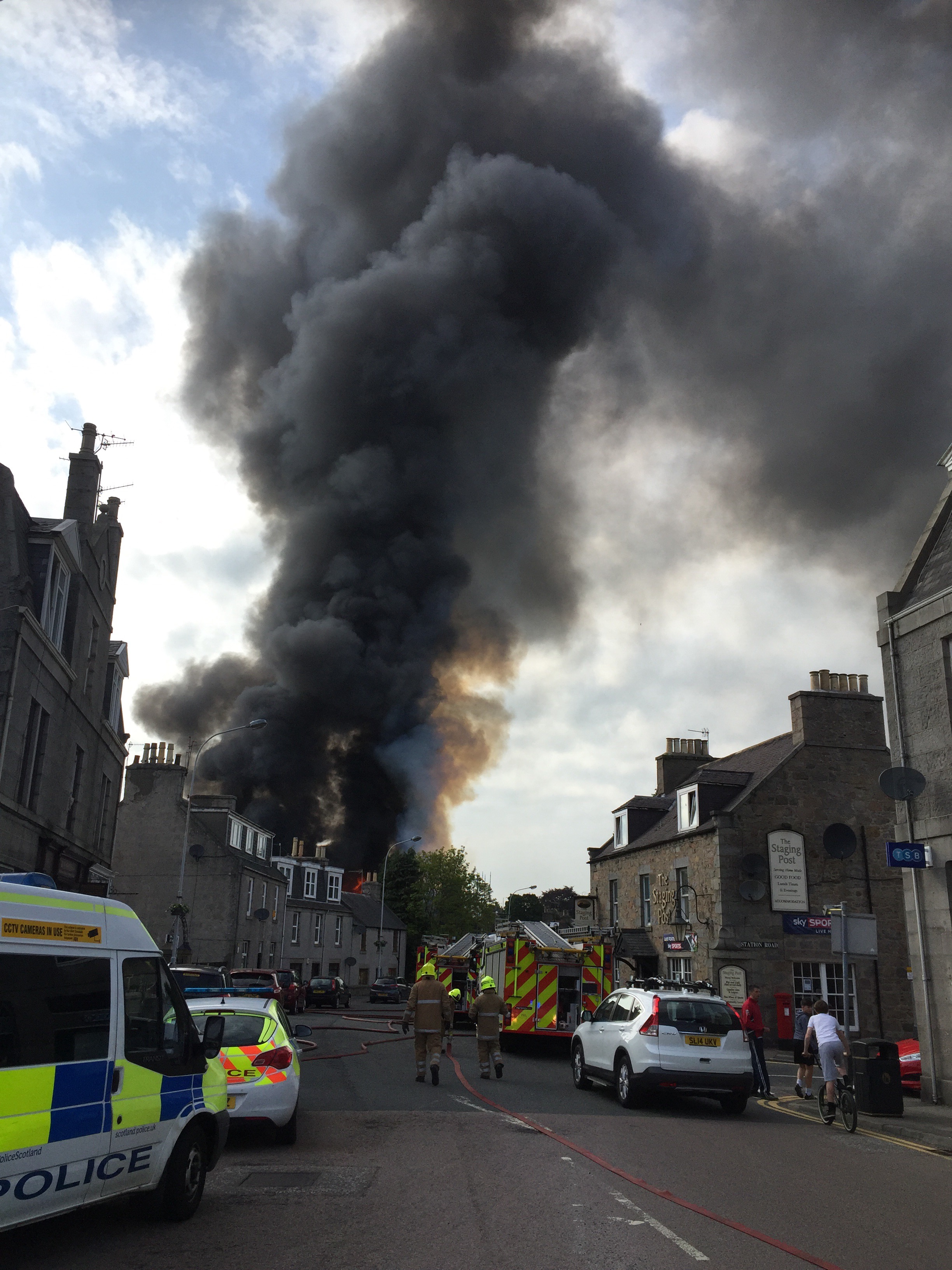 Police have closed off access via Old Meldrum Road while firefighters battle to control the blaze.