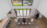 The upstairs seating area feels secluded and cosy and leads onto the glass balcony. Extra storage has been added throughout to help achieve the Scandinavian uncluttered look.