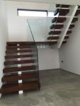 The bespoke staircase was engineered to give a floating appearance in keeping with the minimalist design of the house. While the dark wood of the stairs offers an eye-catching contrast to the white walls, a frame-less glass handrail with secret fixings and integrated LED lighting maintains a contemporary aesthetic with practicality.
