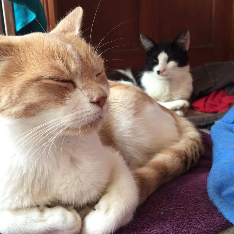 “We got them both as kittens, she was the runt of the litter and she won’t leave the house without him.”